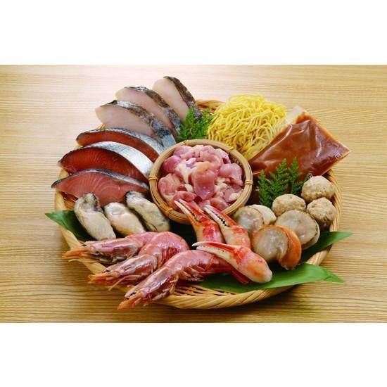 北海道産の魚を中心に肉と麺まで9種類の味をそろえた鍋具材セットです。