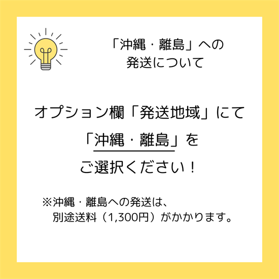 ※沖縄・離島への発送は、別途送料(税込 1,300円)がかかります。オプション欄「発送地域」にて「沖縄・離島」をご選択ください。